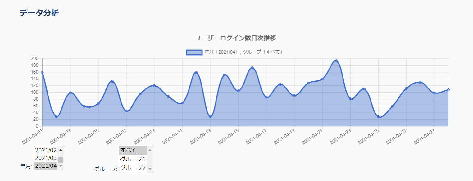 日次のログイン数が確認できますので、BPUSS がどの程度利用されているか確認することができます。