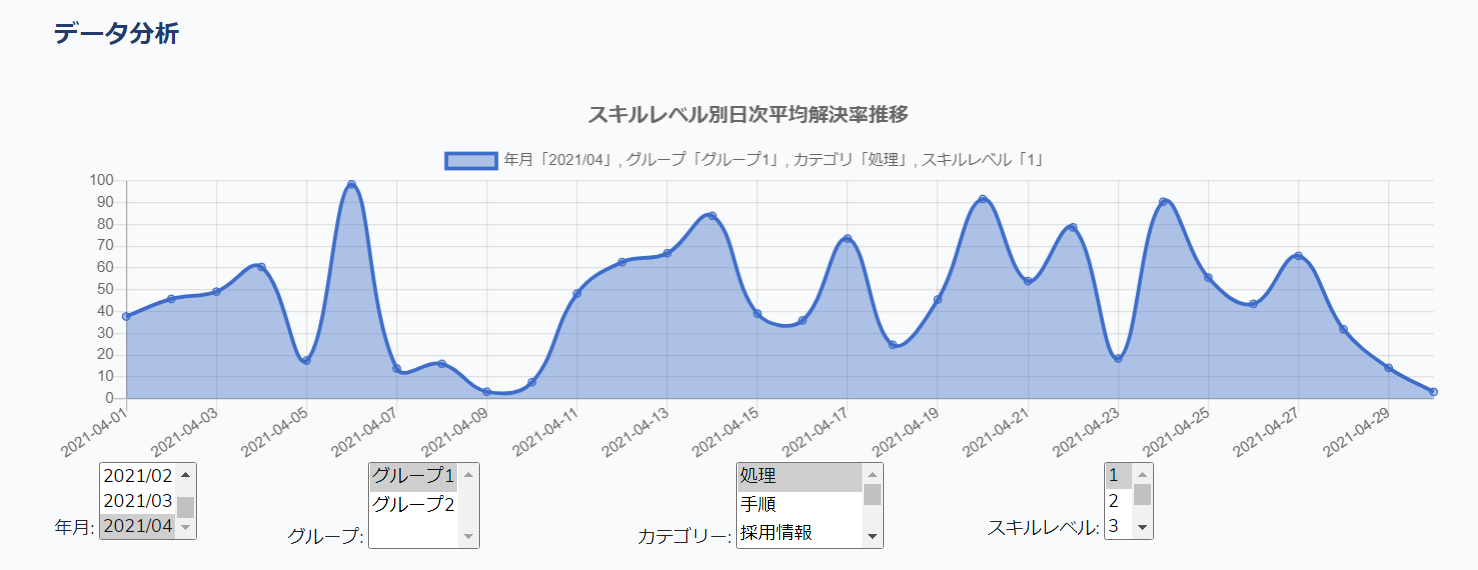 スキルレベルとQAのカテゴリごとに、解決率(※)の推移が確認できます。